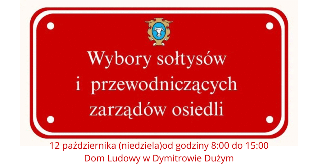 - OGŁOSZENIE WYBORCZEDrodzy Mieszkańcy! Już w niedzielę, 12 października 2025 roku, w godzinach od 8:00 do 15:00, odbędą się wybory Sołtysów oraz Przewodniczących zarządów osiedli.To wyjątkowy moment, by wspólnie zdecydować o tym, kto będzie nas reprezentował w sprawach lokalnych! 💪 W Dymitrowie przeprowadzone zostaną wybory Sołtysa, które odbędą się w Domu Ludowym.Serdecznie zachęcamy wszystkich mieszkańców do udziału… Dowiedz się więcej: OGŁOSZENIE WYBORCZE